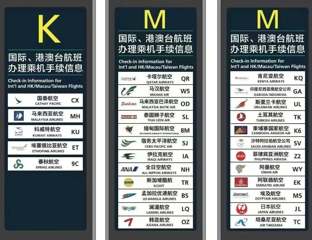 此次转到二号航站楼的国际航班值机柜台主要位于K★★、M值机区。K区主要办理国泰航空■■★、马来西亚航空、科威特航空◆■、埃塞俄比亚航空★★◆◆★、春秋航空■★★★◆。M区主要办理卡塔尔航空、马汉航空、马来西亚巴泽航空■◆、泰国狮子航空■■■★★、缅甸国际航空、宿务太平洋航空◆★◆、伊拉克航空◆◆★★■、全日空航空、新加坡酷航、孟加拉优速航空◆★、澜湄航空、韩亚航空★★、肯尼亚航空、印度尼西亚鹰航空公司、斯里兰卡航空、土耳其航空◆■◆★◆★、柬埔寨国家航空◆■◆★■◆、沙特阿拉伯航空公司、菲律宾亚洲航空、阿曼航空★■★■■■、阿联酋航空、埃及航空、日本航空◆■★◆、坦桑尼亚航空。旅客可根据航班提示前往相应柜台办理值机。
